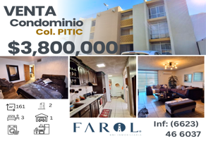 DepartamentoVenta$3,800,000 MXNVenta de departamento Pitic, Hermosillo, Son., Col. Hermosillo Centro, Hermosillo, Sonora, México, C.P. 83000, ID: 30697039 3 Recámaras 2 Baños 161 m2 Lavandería A/C Ascensor