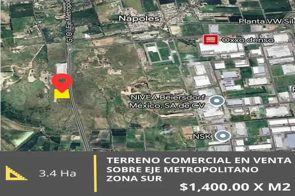 Terreno comercialVenta$47,789,000 MXNVenta de terreno comercial en eje metropolitano #1, Col. La Cantera (Ejido Duarte), León, Guanajuato, México, C.P. 37670, ID: 28878069 2 Recámaras 34135 m2 Alberca Terraza Ascensor Gym