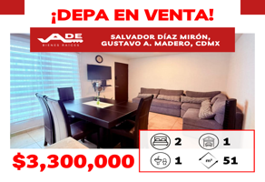 DepartamentoVenta$1,999,000 MXNVenta departamento en Calzada San Juan de Aragón, Col. DM Nacional, Gustavo A. Madero, DF / CDMX, México, C.P. 07450, ID: 30603056 2 Recámaras 1 Baño 59 m2