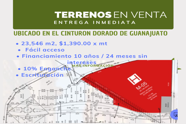 Terreno comercialVenta$32,728,940 MXNSe vende terreno comercial Q6C7, Col. La Luz, León, Guanajuato, México, C.P. 37458, ID: 29915106 23546 m2