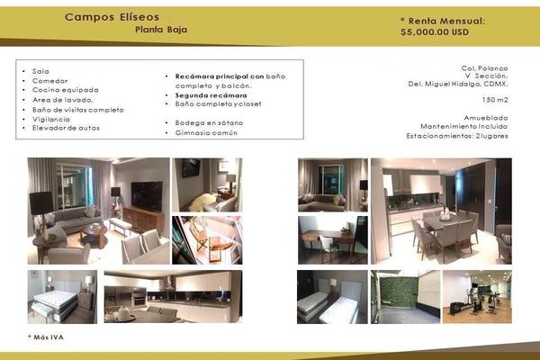 DepartamentoRenta$5,000 USDSe renta departamento en Campos Eliseos, Col. Polanco V Sección, Miguel Hidalgo, DF / CDMX, México, C.P. 11560, ID: 14248015 2 Recámaras 2 Baños 150 m2 Amueblado Ascensor Gym