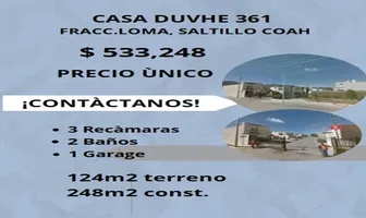 CasaVentaREMATE$914,342 MXNVenta casa en DUVHE #361, Col. Lomas del Sur, Saltillo, Coahuila de Zaragoza, México, C.P. 25084, ID: 27674810 3 Recámaras 3 Baños 150 m2 2 Estacionamientos Cisterna C. servicio
