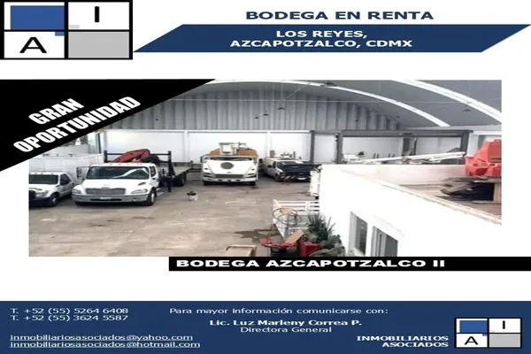BodegaRenta$157,500 MXNRenta de bodega Los reyes, Col. Los Reyes, Azcapotzalco, DF / CDMX, México, C.P. 02010, ID: 30762305