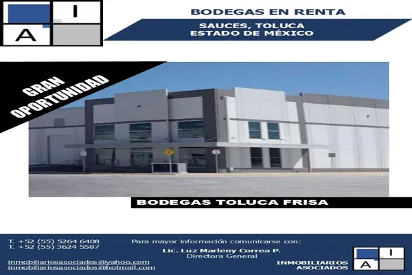 BodegaRenta$130,000 MXNBodega en renta disponible en , Col. San Lorenzo Tepaltitlán Centro, Toluca, México, México, C.P. 50010, ID: 30376498 1870 m2