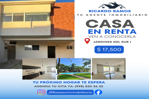 CasaRenta$23,000 MXNCasa en renta disponible en Segovia #82, Col. Residencial Monte Verde, Benito Juárez, Quintana Roo, México, C.P. 77536, ID: 30555675 3 Recámaras 2 Baños 144 m2