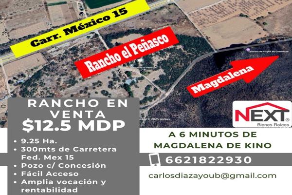 RanchoVenta$12,500,000 MXNRancho en venta disponible en México 15, Mirasol, Magdalena de Kino, Son. #s/n, Col. El Peñasco, Magdalena, Sonora, México, C.P. 84175, ID: 30905936 5 Recámaras 5 Baños 92500 m2 Amueblado Chimenea C. servicio