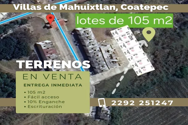Terreno habitacionalVenta$210,000 MXNSe vende terreno en PRIMERO DE MAYO #1, Col. Mahuixtlan, Coatepec, Veracruz de Ignacio de la Llave, México, C.P. 91608, ID: 30489645 105 m2 Luz
