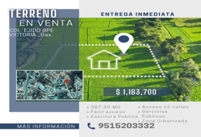 Terreno habitacionalVenta$1,163,700 MXNConstitución, Guadalupe Victoria, 68043 Oaxaca de Juárez, Oax., Col. Lomas de San Jacinto Sector Uno, Oaxaca de Juárez, Oaxaca, México, C.P. 68043, ID: 30321430 387 m2 Mascota Teléfono
