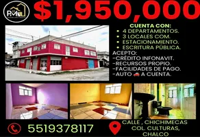 CasaVenta$3,750,000 MXNÁlvaro Obregón #24, Col. Chalco de Díaz Covarrubias Centro, Chalco, México, México, C.P. 56600, ID: 28525234 4 Recámaras 2 Baños 235 m2 3 Estacionamientos Luz Teléfono