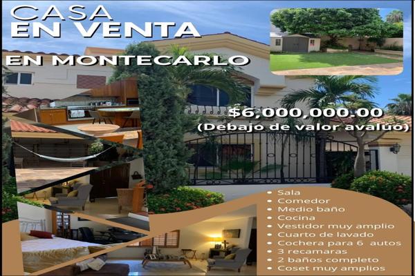 CasaVenta$6,000,000 MXNVenta casa en Montecarlo, Col. Montecarlo Residencial, Culiacán, Sinaloa, México, C.P. 80054, ID: 29522026 3 Recámaras 2 Baños Mascota Teléfono