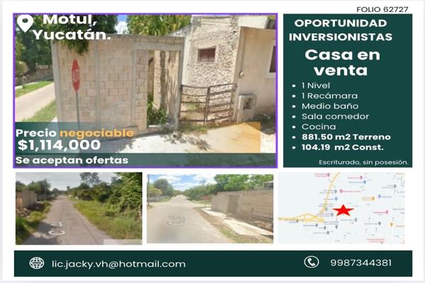 CasaVenta$1,800,000 MXNVenta casa en Col. Felipe Carrillo Puerto, Motul, Yucatán, México, C.P. 97432, ID: 30416035 1 Recámara 1 Baño 74 m2