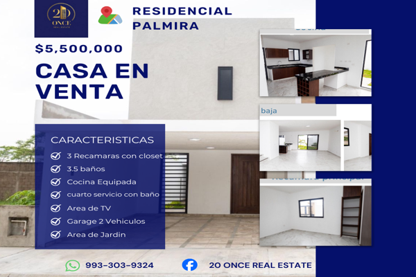 CasaVenta$5,195,000 MXNSe vende casa en Col. Real Campestre, Nacajuca, Tabasco, México, C.P. 86246, ID: 31018404 3 Recámaras 3 Baños 219 m2