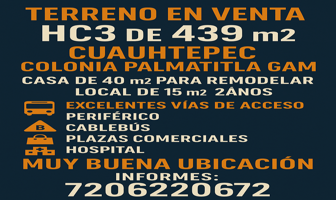 Terreno habitacionalVenta$5,400,000 MXNVenta de terreno Ruben leñero, Col. Palmatitla, Gustavo A. Madero, DF / CDMX, México, C.P. 07170, ID: 30785679 439 m2