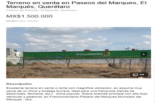 Terreno comercialVenta$6,000,000 MXNTerreno comercial en venta, 21 de Marzo #30, Col. San Francisquito, Querétaro, Querétaro, México, C.P. 76058, ID: 30896844 1000 m2