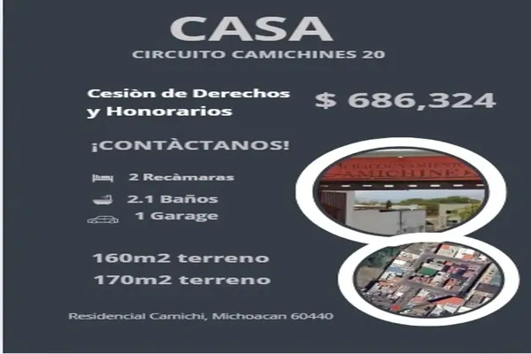 CasaVentaREMATE$686,324 MXNSe vende casa en CIRCUITO CAMICHINES #20, Col. Camichines, Peribán, Michoacán de Ocampo, México, C.P. 60440, ID: 29848971 2 Recámaras 3 Baños 170 m2 Mascota Lavandería Teléfono...