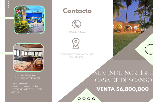CasaVenta$2,980,000 MXNCasa disponible en venta en Cuautla de Morelos, Morelos, Col. Plan de Ayala, Cuautla, Morelos, México, C.P. 62743, ID: 30396674 3 Recámaras 2 Baños 165 m2 Cisterna