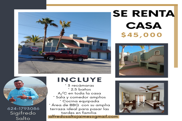 CasaRenta$5,500 USDRenta de casa en Rancho san Lucas, Col. Cabo San Lucas Centro, Los Cabos, Baja California Sur, México, C.P. 23450, ID: 30352182 4 Recámaras 3 Baños 3 Estacionamientos Alberca Amueblado Lavandería...