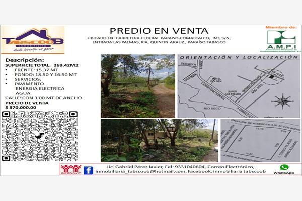 Terreno habitacionalVenta$370,000 MXNENTRADA LAS PALMAS #SN, Col. Quintín Arauz, Paraíso, Tabasco, México, C.P. 86608, ID: 29188110 269 m2