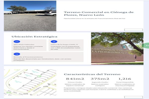 Terreno comercialRenta$59,000 MXNTerreno comercial en renta disponible en Ciénega de Flores, N.L., Col. Real del Sol, Ciénega de Flores, Nuevo León, México, C.P. 65555, ID: 30912164 1216 m2