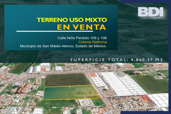 Terreno comercialVenta$11,500,000 MXNTerreno comercial en venta disponible en San Mateo Atenco, Méx. #106, Col. Reforma, San Mateo Atenco, México, México, C.P. 52120, ID: 30453005 4860 m2