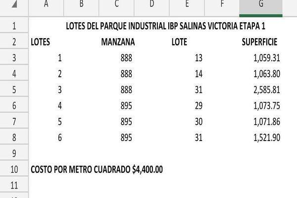 Terreno industrialVenta$2,403,000 MXNSe vende terreno industrial en PARQUE INDUSTRIAL, Col. Salinas Victoria, Salinas Victoria, Nuevo León, México, C.P. 65500, ID: 30020700 540 m2