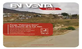 Terreno habitacionalVenta$535,000 MXNTerreno en venta disponible en Guerrero #0, Col. El Palenque, San Antonio de la Cal, Oaxaca, México, C.P. 71250, ID: 30061159 176 m2 Vigilancia Luz