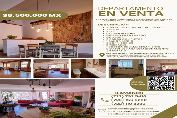 DepartamentoVenta$8,500,000 MXNSe vende departamento en C. Guillermo Gonzalez Camarena, Santa Fe, Zedec Sta Fé, 01376 Ciudad de México, CDMX #999Int. 2202, Col. Santa Fe Centro Ciudad, Álvaro Obregón, DF / CDMX, México, C.P. 01376, ID: 30755923 3 Recámaras 3 Baños 158 m2 Terraza Teléfono Ascensor...