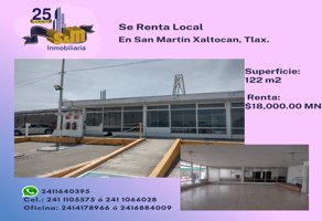 LocalRenta$18,000 MXNRenta local en Avenida Independencia, Col. Cuatla, Xaltocan, Tlaxcala, México, C.P. 90440, ID: 27809860 1 Baño 122 m2 2 Estacionamientos Luz