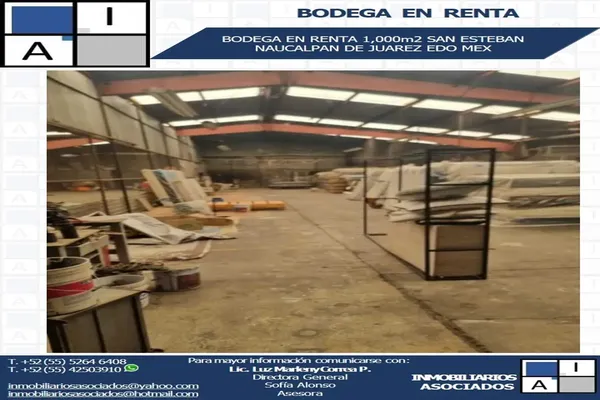 BodegaRenta$120,000 MXNBodega en renta, SAN ESTEBAN #SN, Col. San Esteban Huitzilacasco, Naucalpan de Juárez, México, México, C.P. 53550, ID: 30581922 1000 m2