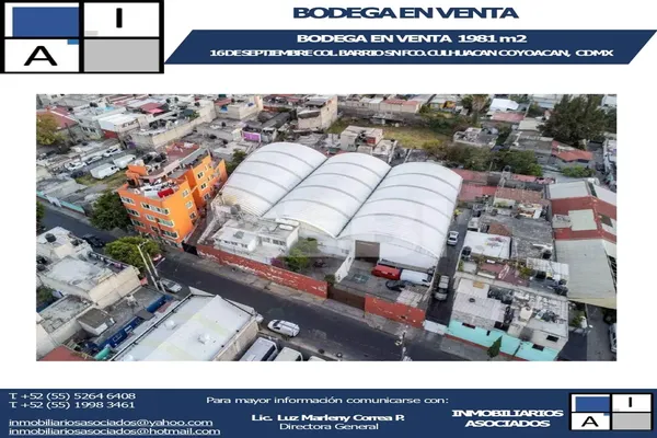 BodegaVenta$27,000,000 MXNBodega disponible en venta en 16 DE SEPTIEMBRE #1, Col. San Francisco Culhuacán Barrio de San Francisco, Coyoacán, DF / CDMX, México, C.P. 04260, ID: 28580212 1981 m2