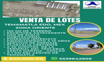 Terreno habitacionalVenta$700,000 MXNSe vende terreno en , Col. Temamatla, Temamatla, México, México, C.P. 56650, ID: 30882544 127 m2