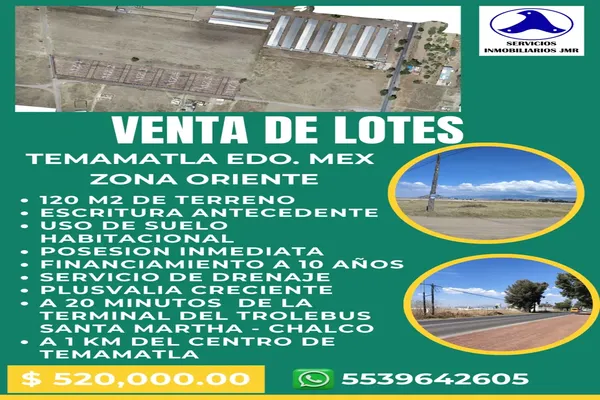 Terreno habitacionalVenta$2,000,000 MXNTerreno en venta, , Col. Temamatla, Temamatla, México, México, C.P. 56650, ID: 30882547 255 m2