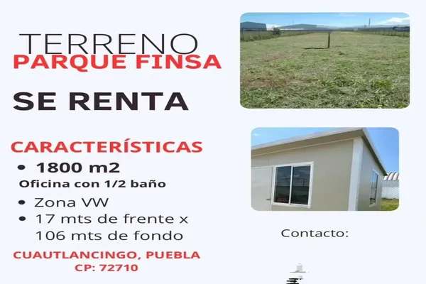 Terreno industrialRenta$20,000 MXNAutop. México - Puebla 117, San Lorenzo, 72710 Sanctorum, Pue. #117, Col. 15 de Septiembre, Cuautlancingo, Puebla, México, C.P. 72710, ID: 30400265 1802 m2