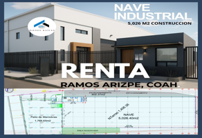 Nave industrialRenta$31,000 USDSe renta nave industrial en , Col. Ramos Arizpe Centro, Ramos Arizpe, Coahuila de Zaragoza, México, C.P. 25900, ID: 26000806 5000 m2