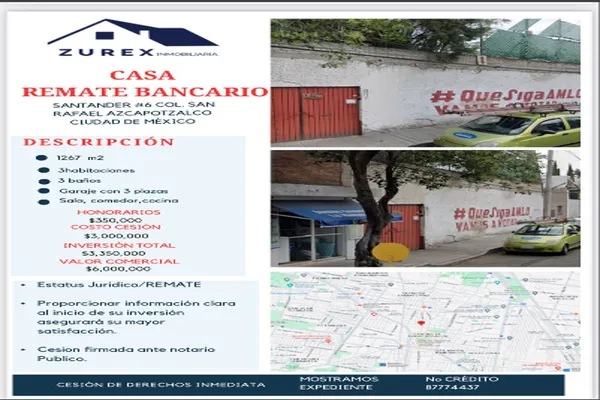 Terreno habitacionalVenta$3,350,000 MXNSe vende terreno en SANTANDER #6, Col. San Rafael, Azcapotzalco, DF / CDMX, México, C.P. 02010, ID: 29348960 1267 m2