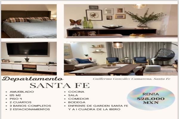 DepartamentoRenta$28,000 MXNRenta de departamento Guillermo González Camarena, Col. Santa Fe Centro Ciudad, Álvaro Obregón, DF / CDMX, México, C.P. 01376, ID: 27928751 2 Recámaras 3 Baños 125 m2 Amueblado