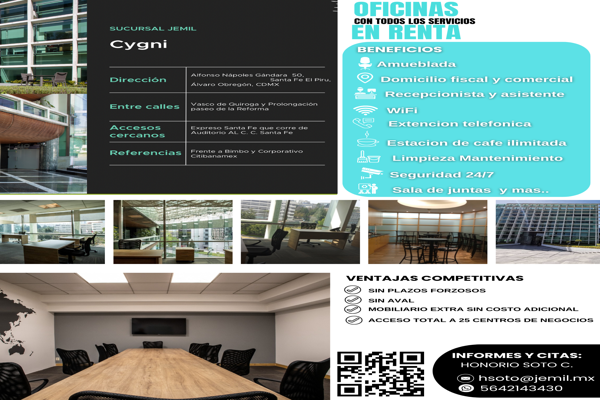 OficinaRenta$28,000 MXNSe renta oficina en Alfonso Nápoles Gándara #50, Col. Lomas de Santa Fe, Álvaro Obregón, DF / CDMX, México, C.P. 01219, ID: 26025669 28 m2 1 Estacionamiento Vigilancia Luz Antiincendio A/C...