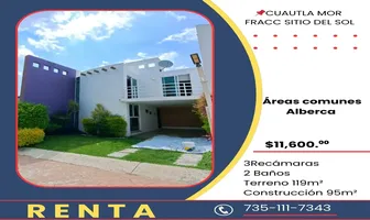 CasaRenta$11,600 MXNRenta casa en Sin nombre de calle #432, Col. Sitio del Sol, Cuautla, Morelos, México, C.P. 62756, ID: 30062012 3 Recámaras 3 Baños 120 m2 Luz