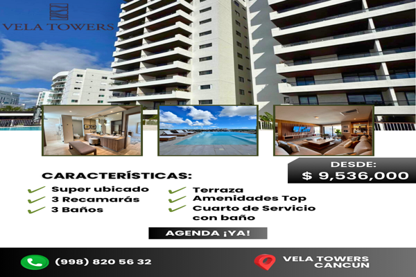 DepartamentoVenta$9,687,000 MXNVenta de departamento en LAGOS DEL SOL, Col. Lagos del Sol, Benito Juárez, Quintana Roo, México, C.P. 77533, ID: 29295241 3 Recámaras 3 Baños 203 m2 Alberca Gym