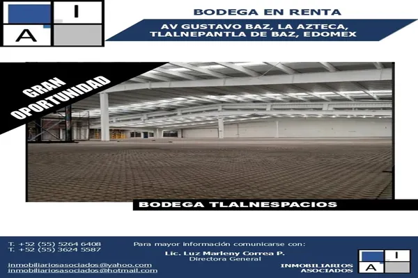 BodegaRenta$108,000 MXNRenta de bodega AV DR GUSTAVO BAZ #S/N, Col. La Azteca, Tlalnepantla de Baz, México, México, C.P. 54010, ID: 30467894 600 m2