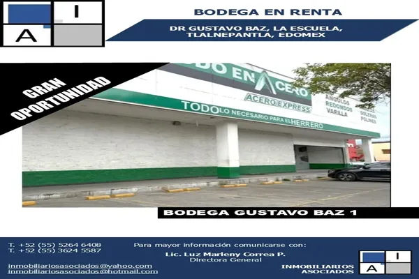 BodegaRenta$262,500 MXNBodega en renta, DR GUSTAVO BAZ #S/N, Col. La Escuela, Tlalnepantla de Baz, México, México, C.P. 54090, ID: 30444077 1500 m2