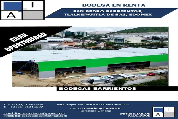 BodegaRenta$364,230 MXNBodega en renta, SAN PEDRO BARRIENTOS #S/N, Col. San Pedro Barrientos, Tlalnepantla de Baz, México, México, C.P. 54010, ID: 30490894 1917 m2