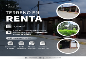 Terreno habitacionalRenta$75,000 MXNRenta de terreno en Calle Tlacaluca #s/n, Col. Santiago, Tepetlaoxtoc, México, México, C.P. 56077, ID: 28939870 3400 m2