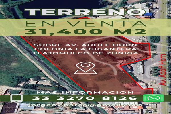Terreno comercialVenta$166,500,000 MXNVenta de terreno comercial en Av Adolf B Horn Junior #3507, Col. Toluquilla, San Pedro Tlaquepaque, Jalisco, México, C.P. 45610, ID: 30808926 31400 m2