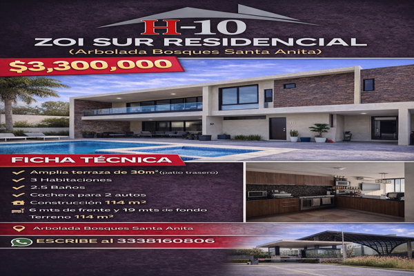 CasaVenta$3,100,000 MXNCasa en venta, BLV SANTA ANITA, Col. Triventi Residencial, Tlajomulco de Zúñiga, Jalisco, México, C.P. 45645, ID: 30828798 3 Recámaras 2 Baños 143 m2 Alberca A/C Gym