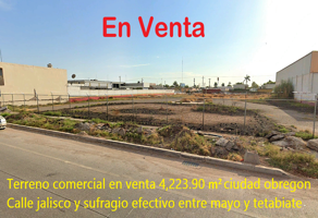 Terreno comercialVenta$23,230,000 MXNVenta de terreno comercial C. Jalisco & C. Sufragio Efectivo, Norte, Urb. No. 4, 85000 Cdad. Obregón, Son., Col. Urbanizable 2, Cajeme, Sonora, México, C.P. 85000, ID: 30453110 4223 m2