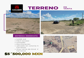 Terreno industrialVenta$5,500,000 MXNTerreno industrial en venta, Col Venustiano Carranza, Granja las Villas, Col. Venustiano Carranza, Coah., Col. Venustiano Carranza Sector Aeropuerto, Nava, Coahuila de Zaragoza, México, C.P. 26183, ID: 30485724 5000 m2