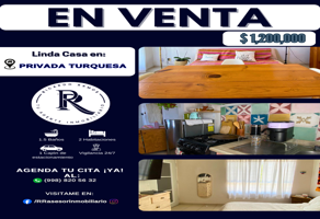 CasaVenta$1,200,000 MXNCasa disponible en venta en Privadas Turquesa, 77518 Cancún, Q.R., Col. Residencial Vista Alegre, Benito Juárez, Quintana Roo, México, C.P. 77518, ID: 30458614 2 Recámaras 1 Baño Lavandería A/C Teléfono Cisterna