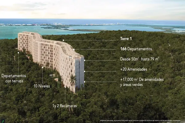 DepartamentoVenta$4,128,864 MXNAv. Colosio, Avenida principal de Cancún, #sn, Col. Ya Ax Tulum, Tulum, Quintana Roo, México, C.P. 77762, ID: 28615190 2 Recámaras 1 Baño 77 m2 1 Estacionamiento Alberca