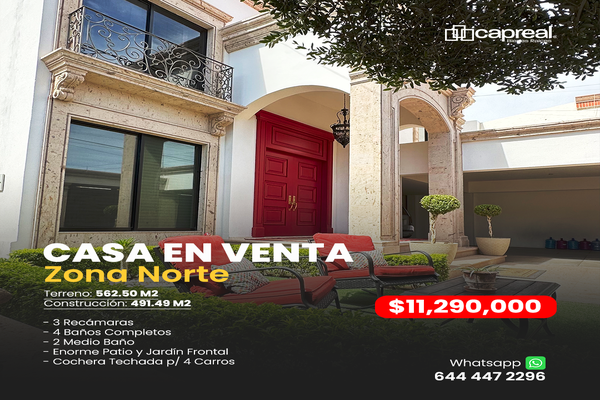 CasaVenta$11,290,000 MXNCasa en venta, Tamaulipas, Col. Zona Norte, Cajeme, Sonora, México, C.P. 85040, ID: 27344679 3 Recámaras 5 Baños 491 m2 A/C C. servicio